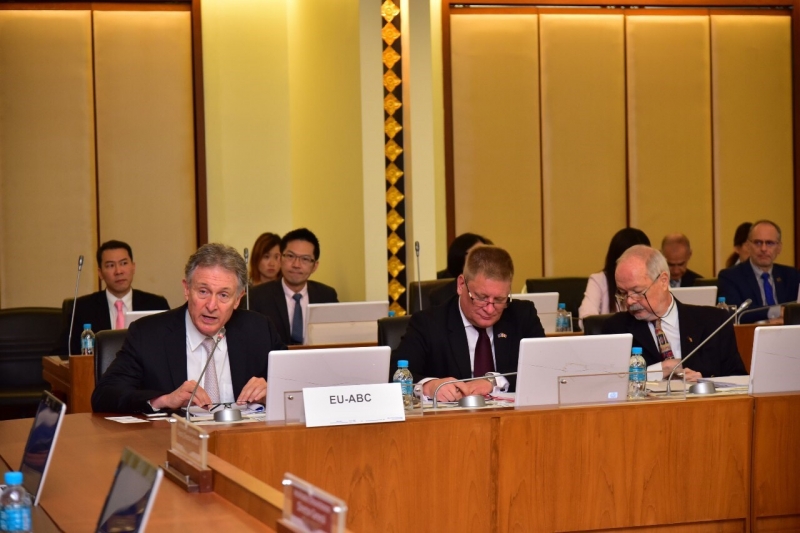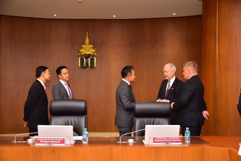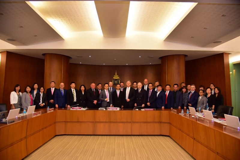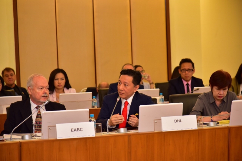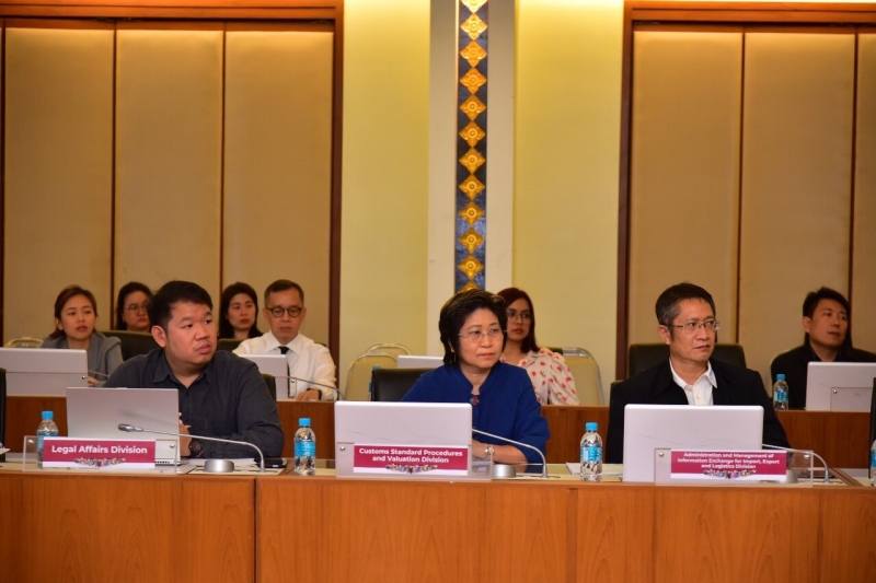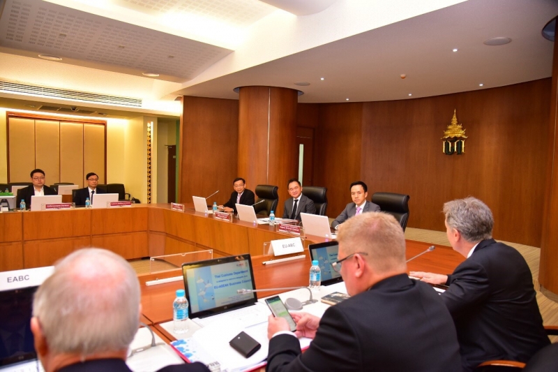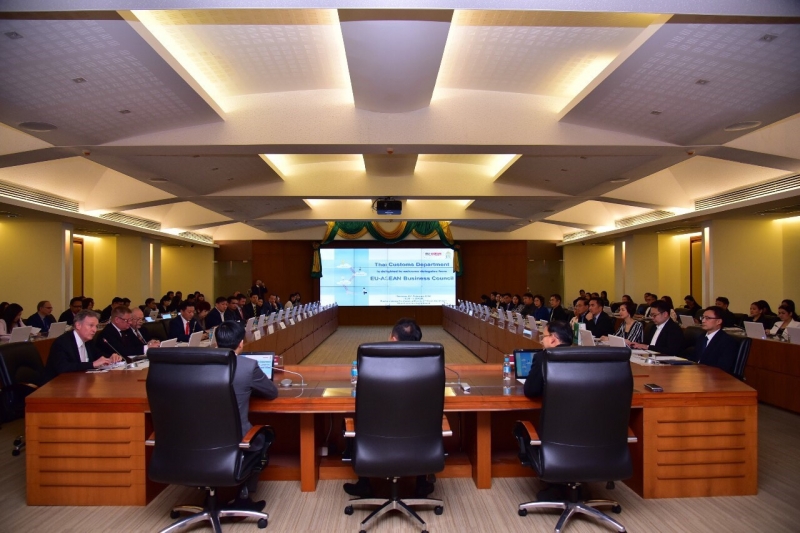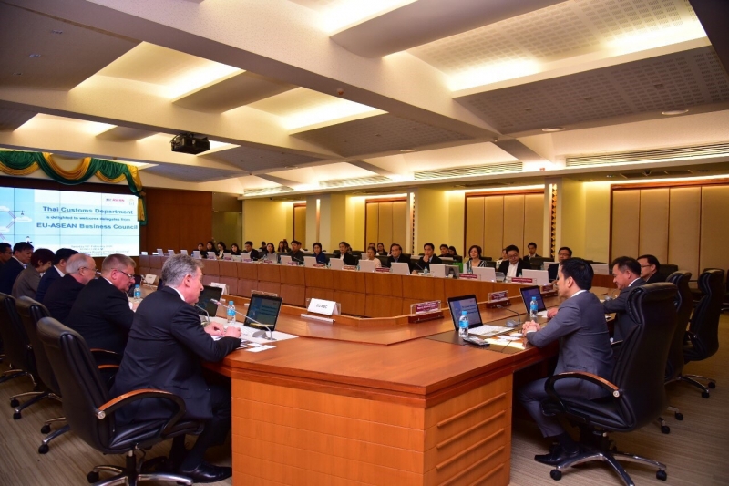 นายกฤษฎา จีนะวิจารณะ อธิบดีกรมศุลกากร นายชัยยุทธ คำคุณ ที่ปรึกษาด้านพัฒนาระบบควบคุมทางศุลกากร และนายพันธ์ทอง ลอยกุลนันท์ รองอธิบดี พร้อมด้วยผู้แทนหน่วยงานภายในกรมศุลกากรให้การต้อนรับคณะผู้แทนสภาธุรกิจอาเซียน-สหภาพยุโรป (EU-ASEAN Business Council: EU-ABC) ในโอกาสเข้าเยี่ยมคารวะและหารือกับอธิบดีกรมศุลกากร เมื่อวันอังคารที่ 18 กุมภาพันธ์ 2563 ณ ห้องประชุมภาสกรวงศ์ ชั้น 2 อาคาร 1 กรมศุลกากร