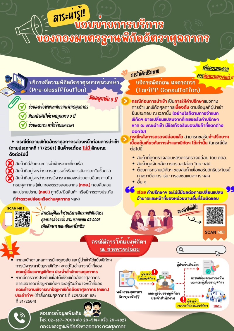 สอบถามข้อมูลเพิ่มเติมได้ที่ : กองพิกัดอัตราศุลกากร (กพก.)