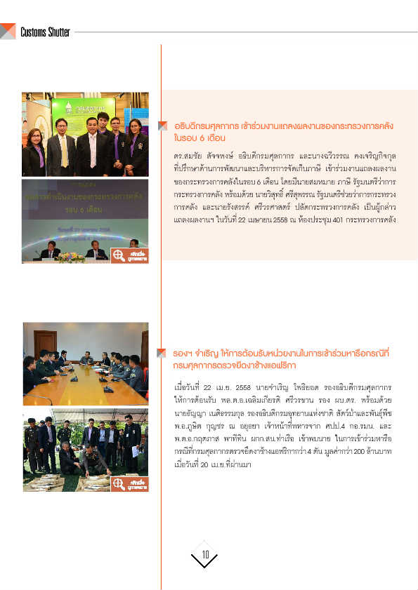 เมื่อวันที่ 22 เม.ย. 2558 นายจ�ำเริญ โพธิยอด รองอธิบดีกรมศุลกากร