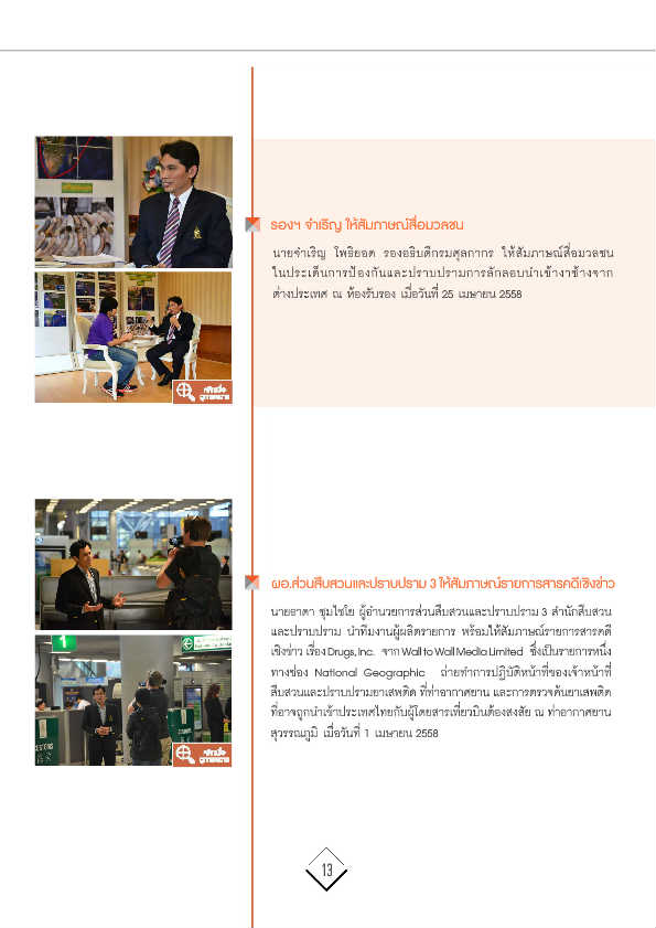 ผอ.สว่ นสบื สวนและปราบปราม 3 ใหส้ มั ภาษณร์ ายการสารคดเี ชงิ ขา่ ว