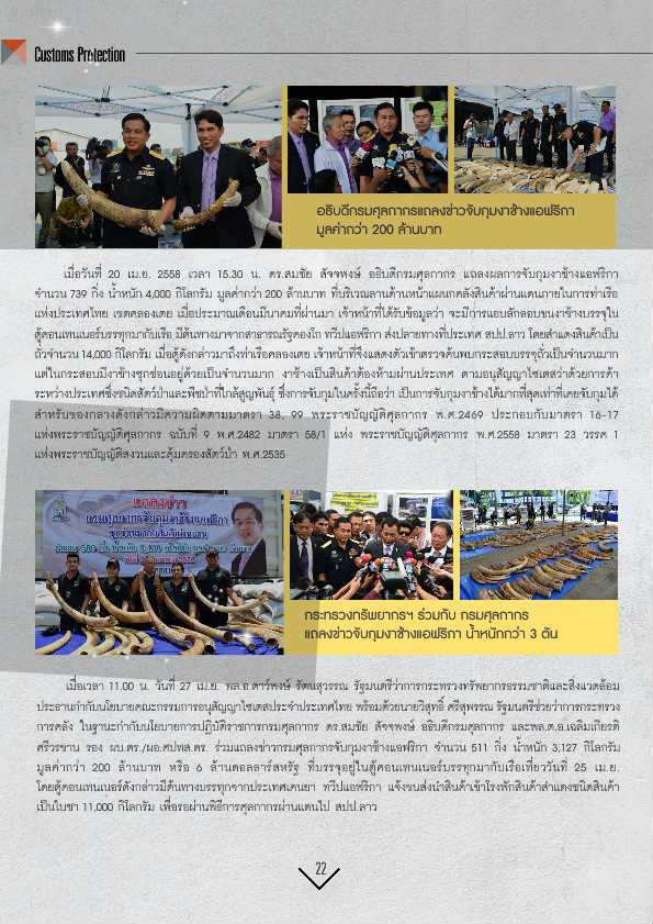 อธบิ ดีกรมศุลกากรแถลงขา่ วจบั กมุ งาชา้ งแอฟริกา