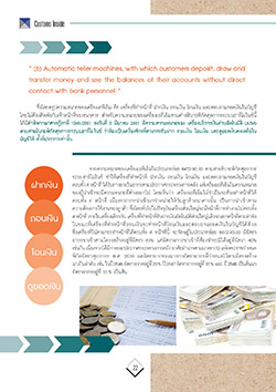 ในขณะท่ีเคร่ืองที่ท�ำหน้าที่ถอนเงินจะท�ำหน้าที่โอนเงินและสอบถามยอดเงินในบัญชีได้ด้วย