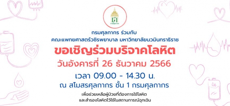 กรมศุลกากร ร่วมกับคณะแพทยศาสตร์วชิรพยาบาล มหาวิทยาลัยนวมินทราธิราช ขอเชิญร่วมบริจาคโลหิต