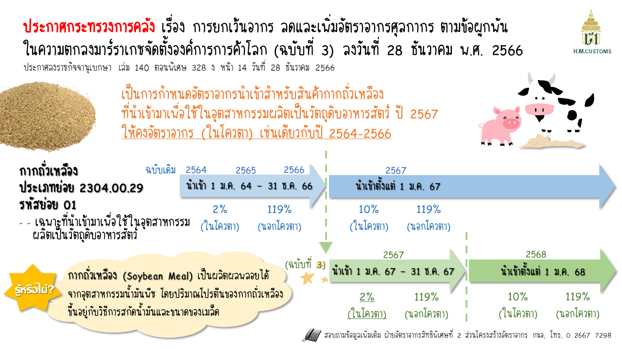 infographic เรื่อง การยกเว้นอากร ลดและเพิ่มอัตราอากรศุลกากร ตามข้อผูกพันในความตกลงมาร์ราเกชจัดตั้งองค์การการค้าโลก ( ฉบับที่ 3 )