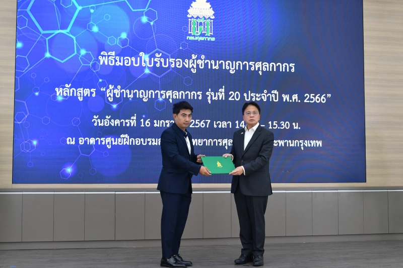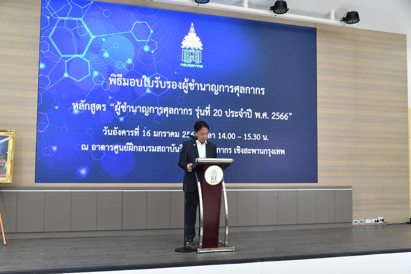 วันนี้ (16 มกราคม 2567) เวลา 14.00 น. นายธีรัชย์ อัตนวานิช อธิบดีกรมศุลกากร เป็นประธานพิธีมอบใบรับรองผู้ชำนาญการศุลกากร โครงการฝึกอบรมหลักสูตรผู้ชำนาญการศุลกากร รุ่นที่ 20 ประจำปี พ.ศ. 2566 ให้แก่ผู้ผ่านการฝึกอบรมและประสงค์เข้าร่วมพิธีมอบใบรับรองฯ จำนวน 169 ราย โดยมี นางนันท์ฐิตา ศิริคุปต์ รองอธิบดีกรมศุลกากร และนางอาภาพรรณี แสงมุกดา ผู้อำนวยการกองบริหารทรัพยากรบุคคล เข้าร่วมพิธีดังกล่าวด้วย