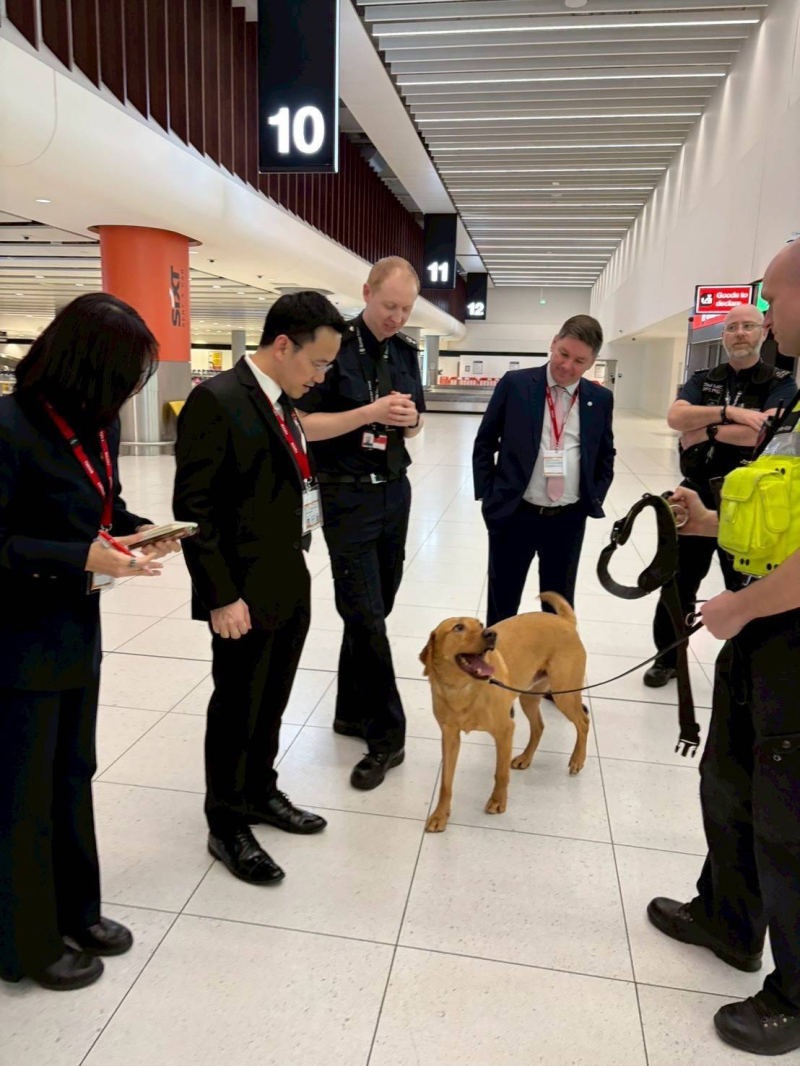 พร้อมทั้งชมการปฏิบัติงานของเจ้าหน้าที่และสุนัขตรวจค้นของ Manchester