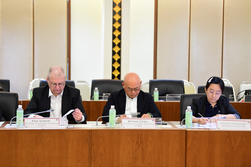 วันที่ ๓๑ มีนาคม ๒๕๖๙ นายพันธ์ทอง ลอยกุลนันท์ อธิบดีกรมศุลกากร นายนิติ วิทยาเต็ม รองอธิบดีกรมศุลกากร ให้การต้อนรับคณะหอการค้าอเมริกันในประเทศไทย (American Chamber of Commerce in Thailand : AMCHAM) ในโอกาสเข้าเยี่ยมคารวะอธิบดี พร้อมทั้งหารือในประเด็นที่เกี่ยวข้องกับการดำเนินงานของกรมศุลกากร ณ กรมศุลกากร