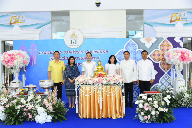 วันที่ ๗ เมษายน ๒๕๖๙ นายพันธ์ทอง ลอยกุลนันท์ อธิบดีกรมศุลกากร พร้อมคณะผู้บริหาร ประกอบพิธีสักการะสิ่งศักดิ์สิทธิ์ประจำกรมศุลกากร จากนั้นได้ร่วมพิธีทำบุญตักบาตร สรงน้ำพระพุทธรูปประจำกรมศุลกากร เพื่อความเป็นสิริมงคลและสืบสานประเพณีไทย เนื่องในวันสงกรานต์ ประจำปี ๒๕๖๙ ณ กรมศุลกากร