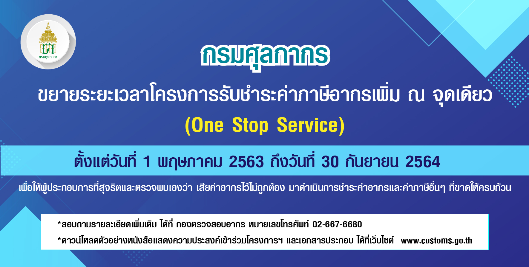 กรมศุลกากรขยายระยะเวลาโครงการรับชำระค่าภาษีอากรเพิ่ม ณ จุดเดียว