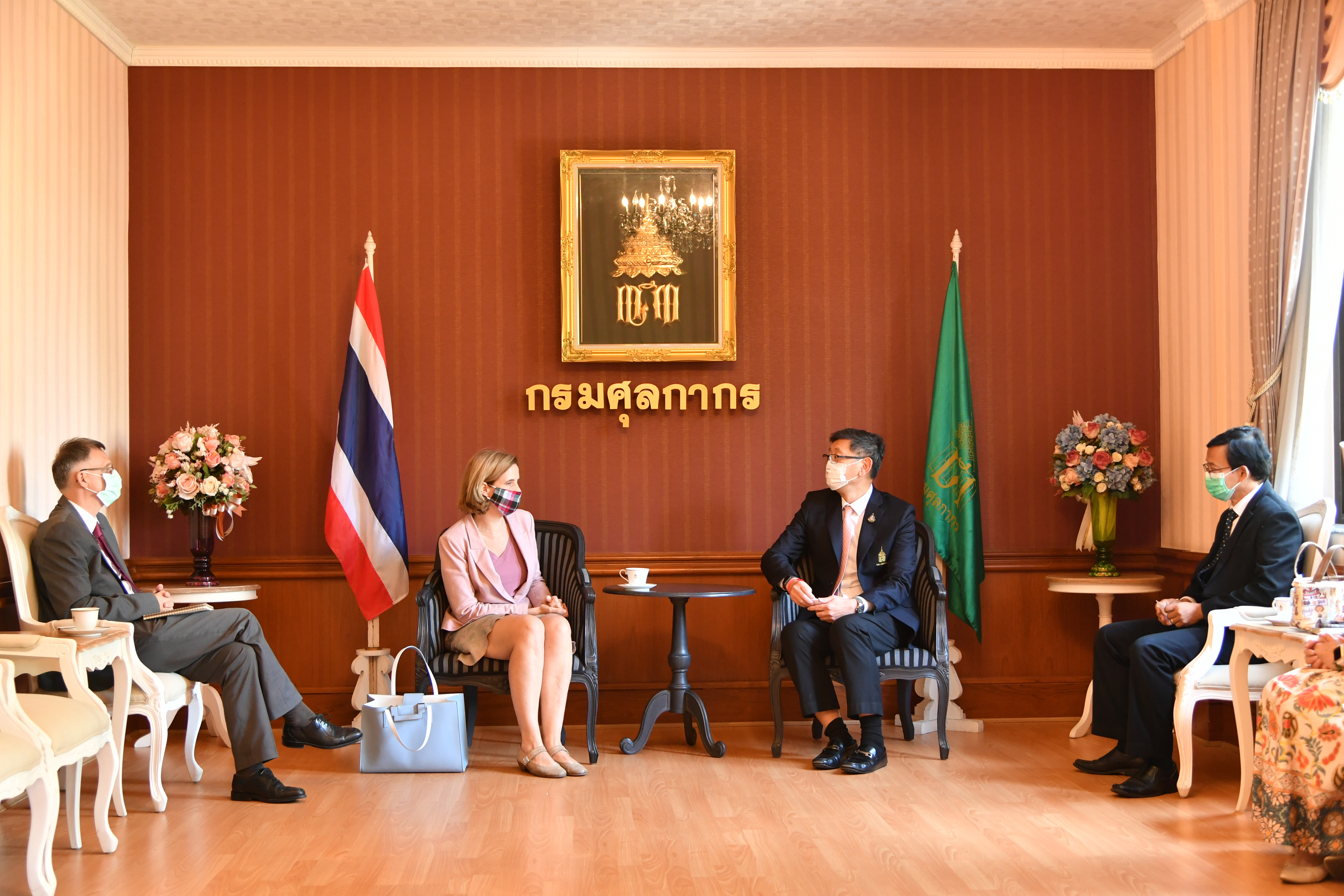 อธิบดีกรมศุลกากร ให้การต้อนรับนาง Sibille de Cartier d’Yves เอกอัครราชทูตวิสามัญผู้มีอำนาจเต็มแห่งราชอาณาจักรเบลเยียมประจำประเทศไทย