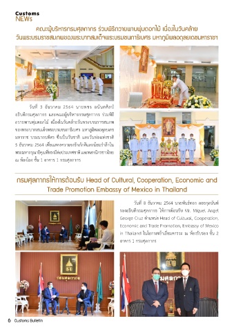 คณะผู้้�บัริหารกรมศุุลกากร ร่วมพื้ธั่ถวายี่พื้านพืุ้่มดอกไม� เน้�องในวันคล�ายี่