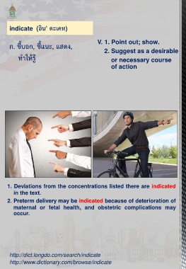 ก. ชี้บอก, ชี้แนะ, แสดง, V. 1. Point out; show.