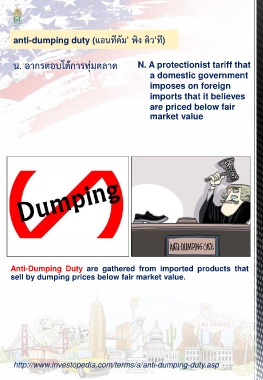 น. อากรตอบโต้การทุ่มตลาด N. A protectionist tariff that
