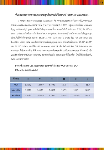 ตารางที่ 3 แสดง Cell Parameter ของสารอ้างอิง Ref MCP และ Ref DCP