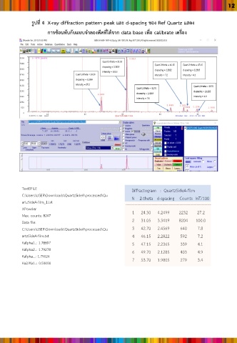 รูปที่ 4 X-ray diffraction pattern peak และ d-spacing ของ Ref Quartz แสดง