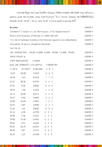 pattern peak ของ Brushite phase (CaHPO •2H O) ใน X Powder Analysis พบว่ามีพีคที่ส าคัญใน