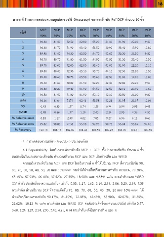 ตารางที่ 5 ผลการทดสอบความถูกต้องของวิธี (Accuracy) ของสารอ้างอิง Ref DCP จ านวน 10 ซ้ า