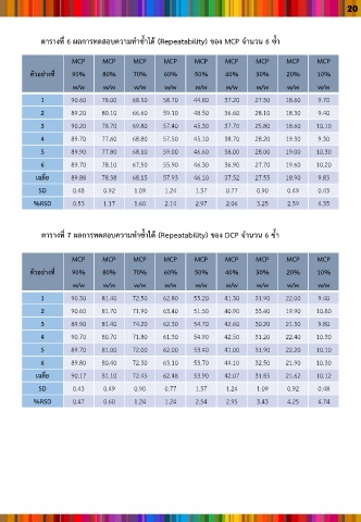 ตารางที่ 6 ผลการทดสอบความท าซ้ าได้ (Repeatability) ของ MCP จ านวน 6 ซ้ า