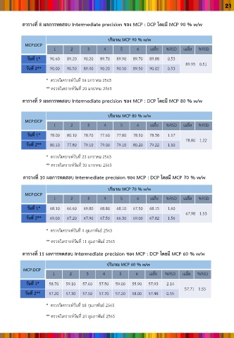 ตารางที่ 8 ผลการทดสอบ Intermediate precision ชอง MCP : DCP โดยมี MCP 90 % w/w