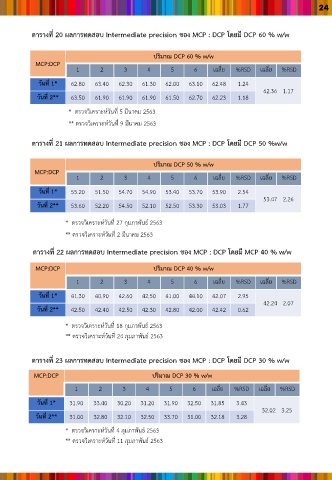 ตารางที่ 23 ผลการทดสอบ Intermediate precision ชอง MCP : DCP โดยมี DCP 30 % w/w