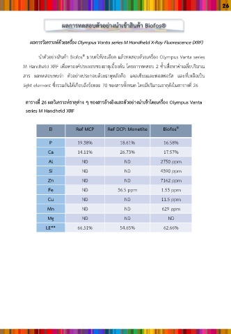 น าตัวอย่างสินค้า Biofos มาบดให้ละเอียด แล้วทดสอบด้วยเครื่อง Olympus Vanta series