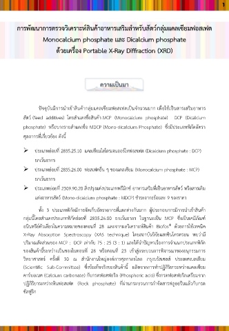การพัฒนาการตรวจวิเคราะห์สินค้าอาหารเสริมส าหรับสัตว์กลุ่มแคลเซียมฟอสเฟต