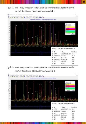 รูปที่ 11 แสดง X-ray diffraction pattern peak และการค านวณปริมาณของสารประกอบใน