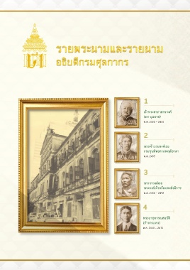 1 เจาพระยาภาสกรวงศ (พร บุนนาค) พ.ศ. 2422 – 2434 2 พระเจาบรมวงศเธอ กรมขุนพิทยลาภพฤฒิธาดา พ.ศ. 2435 3 พระวรวงศเธอ พระองคเจาพรอมพงศอธิราช พ.ศ. 2436 – 2472 4 พระยาสุพรรณสมบัติ (ทําการแทน) พ.ศ. 2460 – 2470